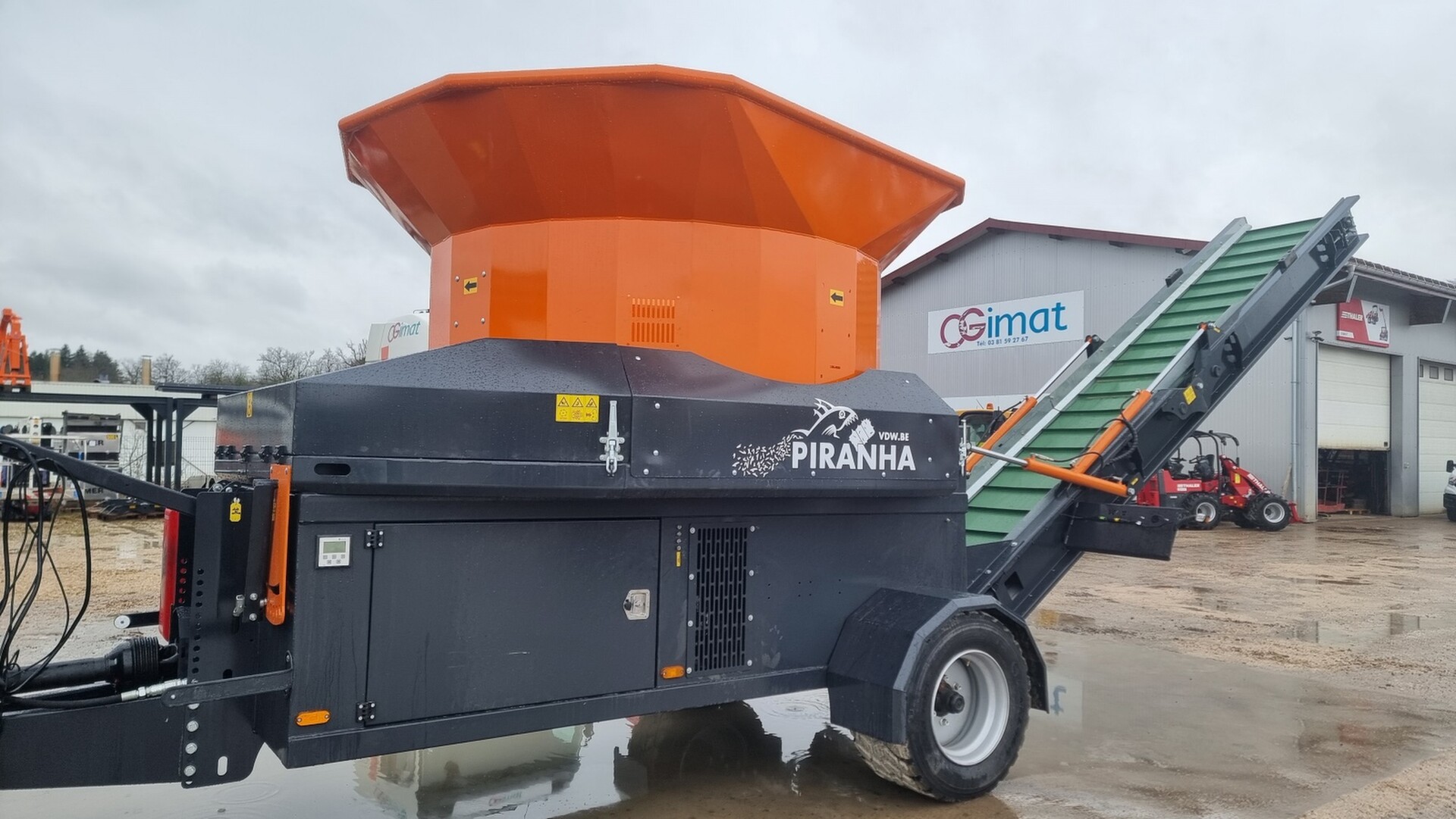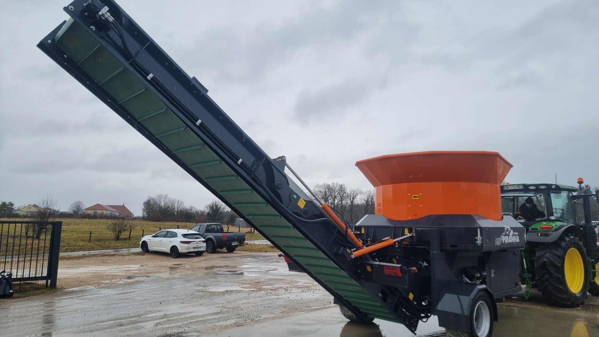 Broyeur de paill tracté avec tapis arrière orientable